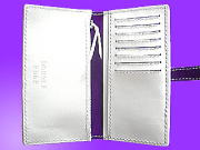 しなやかなガーメント(牛革)を表側に使用し、内ばりには鮮やかな発色の紫色のピッグスエードを使用しています。